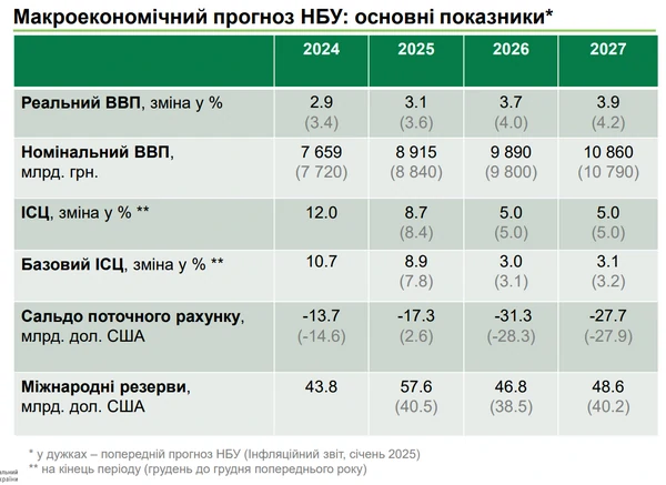 Национальный банк Украины (НБУ) ухудшил прогноз по росту потребительских цен в Украине в 2025 году до 8,7%. В январе центробанк прогнозировал инфляцию на уровне 8,4%. Об этом заявил глава НБУ Андрей Пышный, сообщает РБК-Украина со ссылкой на брифинг на Youtube. Кроме того, НБУ прогнозирует инфляцию в 2026 году на уровне 5,0% (предыдущий прогноз - 5,0%), в 2027 году инфляция составит 5,0% (предыдущий прогноз - 5,0%). Как отметил глава НБУ, летом рост цен в годовом измерении начнет замедляться по широкому спектру товаров и услуг.