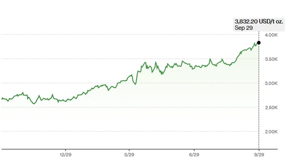 Цены на золото впервые превысили 3800 долларов |