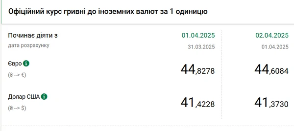 Национальный банк Украины (НБУ) снизил курс доллара к гривне. Доллар дешевеет пятый день подряд. Об этом сообщает РБК-Украина со ссылкой на данные на сайте регулятора. Официальный курс на 2 апреля 2025 года установлен на таком уровне: 41,373 гривен за 1 доллар (-0,0498 грн). Официальный курс евро составит 44,6084 гривен за 1 евро (-0,2194 грн).
