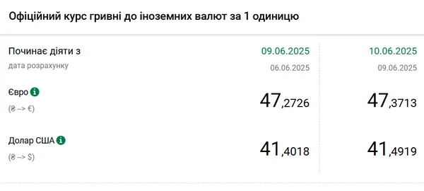 Национальный банк Украины (НБУ) повысил курс доллара к гривне. Доллар подорожал после снижения в течение трех дней подряд. Об этом сообщает РБК-Украина со ссылкой на данные на сайте регулятора. Официальный курс на 10 июня 2025 года установлен на таком уровне: 41,4919 гривен за 1 доллар (+0,0901 грн). Официальный курс евро составит 47,3713 гривен за 1 евро (+0,0987 грн).