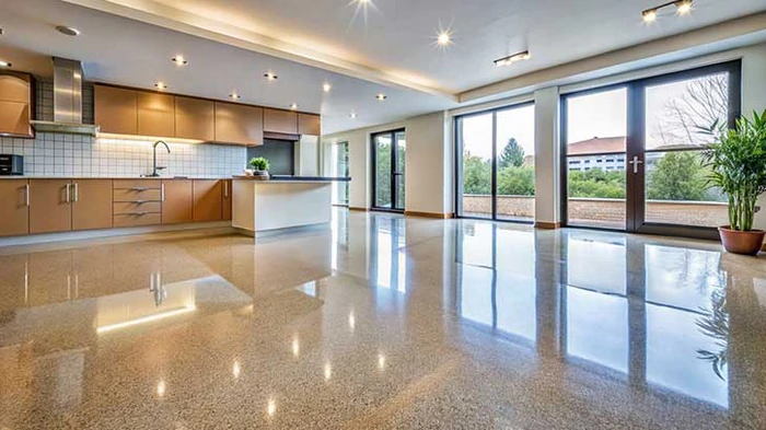 Где применяют?Не менее востребовано оно и в заведениях общественного питания — кафе, ресторанах, барах и столовых. Здесь эпоксидный наливной пол обеспечивает устойчивость к постоянным нагрузкам, влаге и перепадам температур. Он не впитывает запахи и легко очищается даже от сложных загрязнений, что особенно важно для кухонных и производственных зон.