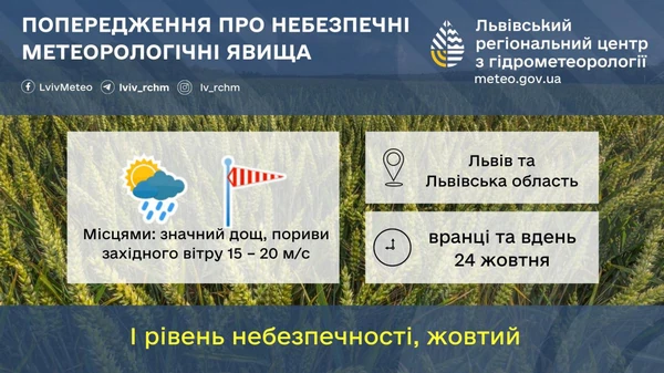 Во Львове на сегодня, 24 октября, объявили повышенный уровень опасности из-за непогоды. Об этом предупреждает Львовский региональный центр по гидрометеорологии.
