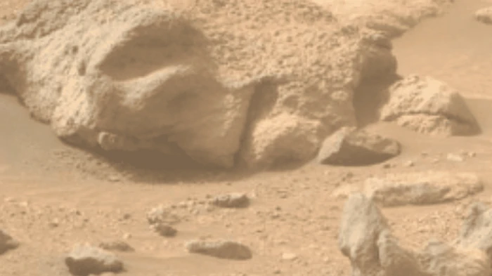 ![]() Фото: скриншот Марсоход NASA Perseverance наткнулся на странный камень вулканической формы на поверхности Марса, который выглядит как выветренный боевой шлем