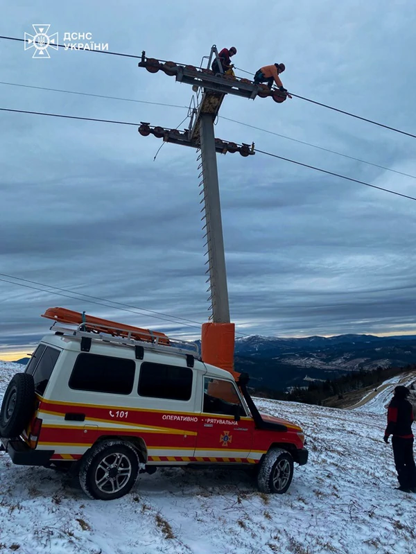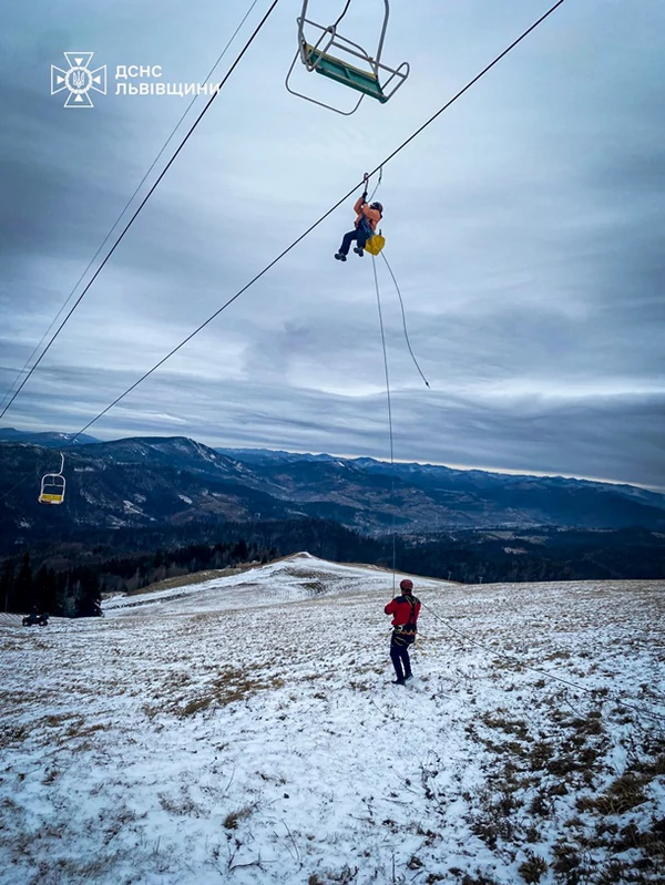 ![]() Фото: ДСНС Львівщини На горе Захар Беркут во Львовской области остановился подъемник: на нем застряли 80 человек