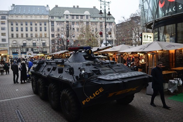 Антитеррористический центр Венгрии после нападения на рождественскую ярмарку в Берлине получил приказ усилить патрулирование центра Будапешта, на улицы города вывели бронетехнику.Как пишет Hungarian Free Press, бронетранспортеры и другая бронетехника заняли позиции в ключевых местах Будапешта: около крупных торговых центров, министерств и ведомств, а также главного рождественского базара на площади Верешмарти. На усиление полицейских подразделений также направили сотрудников Антитеррористического центра Венгрии, которые в полном обмундировании и с автоматами патрулируют улицы города. Как сообщалось ранее, 19 декабря в Берлине (Германия) грузовик въехал в толпу людей на Рождественской ярмарке, в результате чего погибли и пострадали много людей. ![]() ![]() ![]()