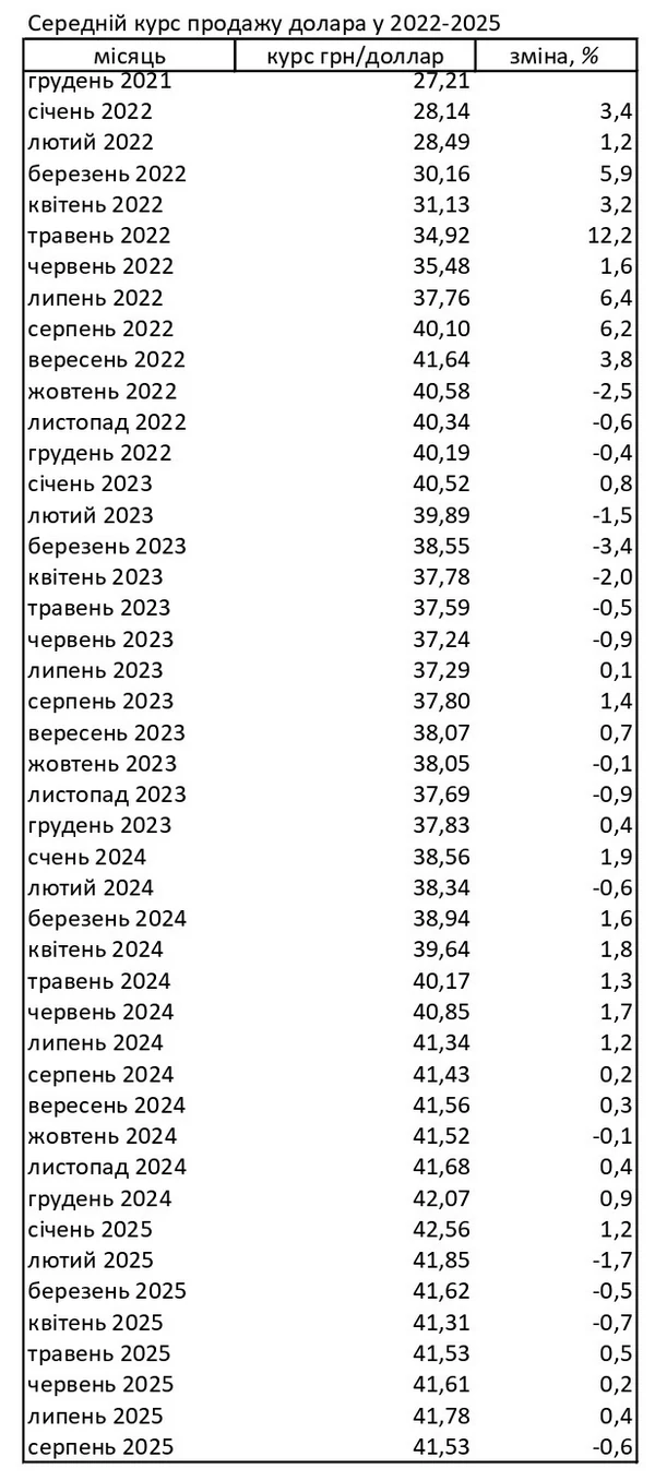Курс наличного доллара перешел к снижению. До этого в течение трех месяцев НБУ поднимал официальный курс, от которого зависит наличный рынок. Об этом сообщает РБК-Украина со ссылкой на данные Национального банка Украины (НБУ). По данным НБУ, средневзвешенный курс продажи наличного доллара в банках Украины в августе 2025 года упал на 0,6% до 41,53 гривен. За год доллар подорожал всего на 10 копеек. А с февраля 2022 года курс вырос на 45,8%. При этом сейчас курс находится ниже уровня, который был в сентябре 2022 года (41,64 грн/доллар). Спрос на валютуСтатистика НБУ свидетельствует, что украинцы в августе увеличили покупку долларов и евро в банках на 30% до 350 млн долларов. Однако спрос на наличную валюту значительно ниже, чем в начале года, когда он достигал 1 млрд долларов. На межбанковском валютном рынке НБУ сократил интервенции в августе на 21,5% до 2,696 млрд долларов. В августе официальный курс доллара упал на 50 копеек до 41,26 гривен. Курс остается ниже, чем в конце прошлого года (42,03 грн/доллар). Отметим, по данным НБУ, средний курс продажи наличного доллара за 2024 год вырос на 11,2% до 42,07 гривен. За 2023 год курс вырос на 10,2%. | |