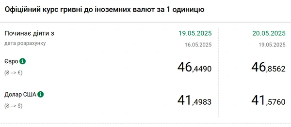 Национальный банк Украины (НБУ) повысил курс доллара к гривне. Единая европейская валюта резко подорожала. Об этом сообщает РБК-Украина со ссылкой на данные на сайте регулятора. Официальный курс на 20 мая 2025 года установлен на таком уровне: 41,576 гривен за 1 доллар (+0,0777 грн). Официальный курс евро составит 46,8562 гривен за 1 евро (+0,4072 грн).