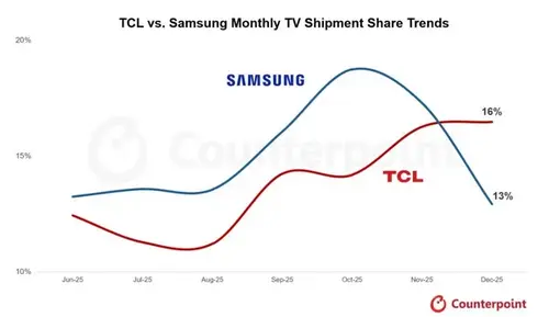 ![]() Фото: скриншот По итогам декабря 2025 года аналитики подтвердили, что TCL обогнала конкурента
