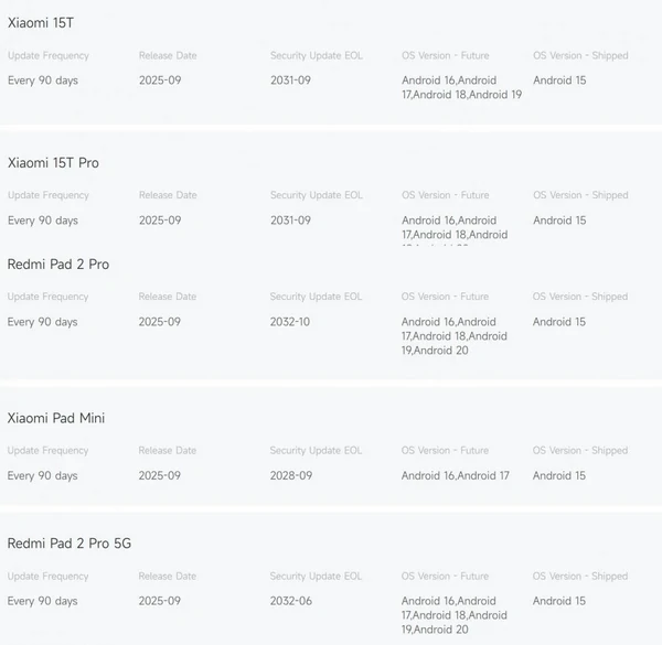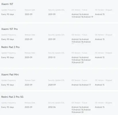 Xiaomi объявила о расширении программной поддержки для некоторых своих устройств. Теперь девайсы китайского бренда будут получать обновления в течение семи лет вместо шести, догнав Samsung, Google и Honor. Среди смартфонов ими стали Xiaomi 15T и Xiaomi 15T Pro, выпущенные ранее в этом году. Обе модели гарантировано будут получать патчи безопасности до сентября 2031 года. При этом версия 15T Pro получит шесть мажорных обновлений операционной системы, тогда как базовая ограничится пятью. Среди планшетов новыми "долгожителями" стали Redmi Pad 2 и Redmi Pad 2 Pro. Обе модели обновятся до Android 20, но патчи безопасности станут получать еще дольше – вплоть до июня и октября 2032 года соответственно. Пока непонятно, какие еще устройства Xiaomi переведут на семилетний цикл обновлений, и будет ли эта новая программа распространяться на флагманы прошлых лет. Как известно, новые правила ЕС заставили производителей смартфонов резко нарастить длительность программной поддержки. Все поступающие на рынок модели теперь должны получать минимум 5 лет обновлений ОС. Это значит, что общий срок поддержки может доходить до 7-8 лет. Также, согласно новым правила, все смартфоны должны быть устойчивы к "случайным падениям", пыле и воды, а их батарейки должны сохранять не менее 80% от первоначальной емкости после 800 перезарядок. | |