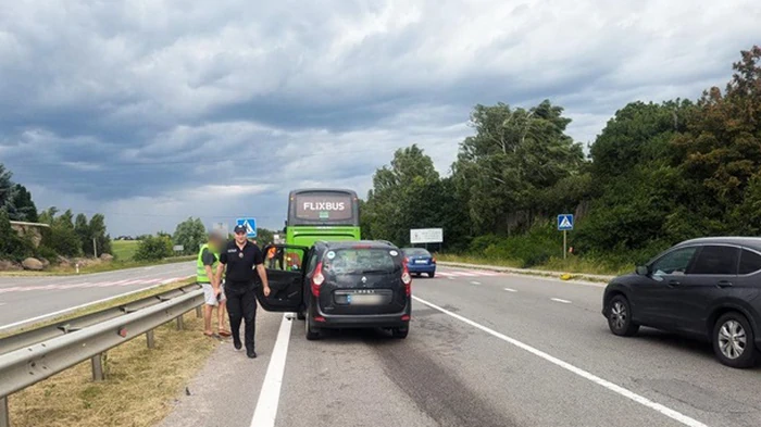 ![]() Фото: Нацполіція України Водитель автомобиля Renault Lodgy допустил столкновение с припаркованным на обочине автобусом международного сообщения Бремен-Киев