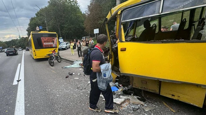 В Киеве маршрутка врезалась в автобус на остановке |