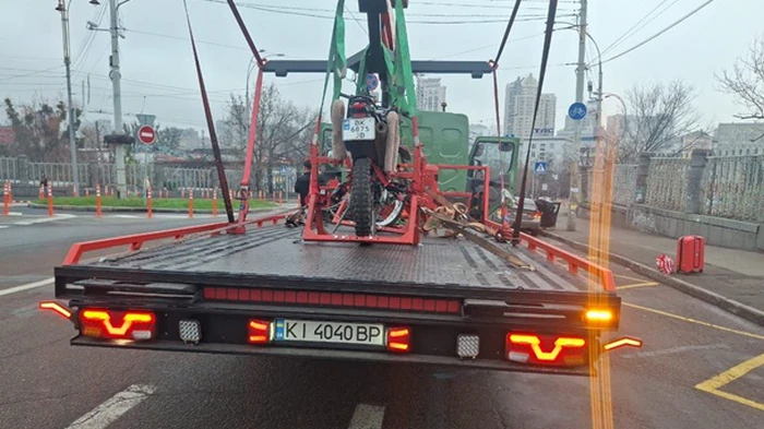 В Киеве впервые эвакуировали мотоцикл за нарушение ПДД |