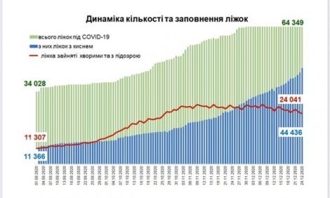 В Украине кислородом обеспечены уже более 70% койко-мест в больницах для пациентов с коронавирусом. Об этом в субботу, 26 декабря, сообщил главный санитарный врач Виктор Ляшко на своей странице в Facebook.