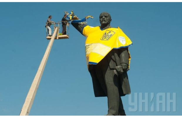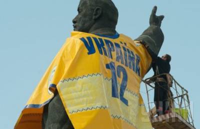 В Запорожье на Ленина надели форму сборной Украины |