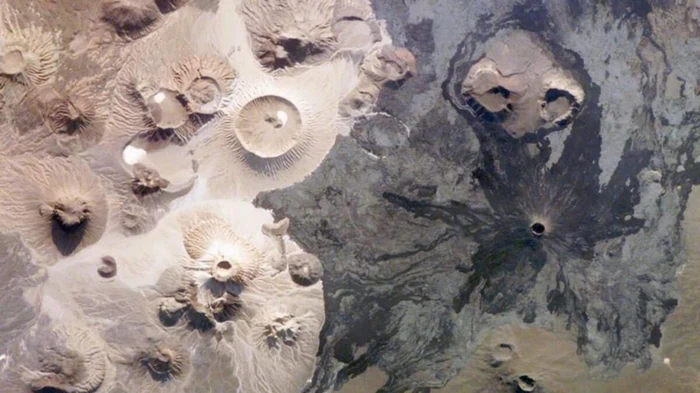 ![]() Фото: NASA Харрат Хайбар называют «вратами ада» из-за вулканических шрамов и пустынной местности