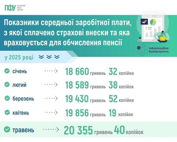 Пенсионный фонд Украины утвердил показатель средней заработной платы за май 2025 года, который учитывается для расчета пенсии. За год зарплата выросла на 18,5%. Об этом сообщает РБК-Украина со ссылкой на данные ПФУ. По данным ПФУ, официальная зарплата в мае составила 20 355,40 гривен, что на 3 176,53 гривен больше, чем в мае прошлого года (17 178,87 гривен). В мае инфляция в Украине выросла до 15,9%. Таким образом, реальная зарплата за год выросла примерно на 2,6%. | |